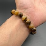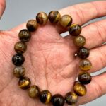 Crafted with 10mm polished Tiger’s Eye beads, this 150 carat gemstone bracelet brings grounding energy, focus, and protection. A bold, stylish piece of handmade healing jewelry from Pakistan.